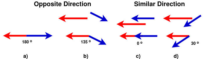 B Angle between two vectors ie phi 180 - C A-B omega 180 or 0 depending on whether AB or not C Angle between two vectors ie. Pointing in the same direction pointing in opposite directions perpendicular to each other positioned at a 45 degree angle Which of 3 Points Enter your answer 5. Thus subtracting a vector from another is the same as adding a vector in the opposite direction ie.