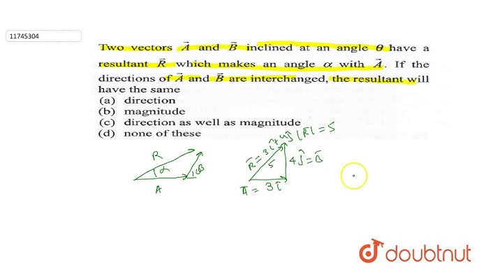Two Vectors Vec A And Vec B Inclined At An Angle Theta Have A Resultant Vec R Youtube. Two vectors vecA and vecB inclined at an angle theta have a resultant vecR which makes an angle alpha with vecA.